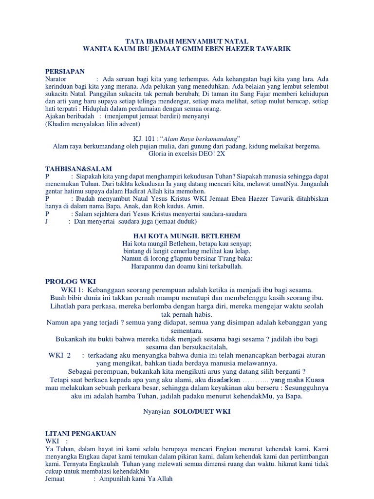 .iya mbak tau kok tempatnya. Leitourgia 3 liturgi tata ibadah aspek makan bersama dan persekutuan sudah jarang dilakukan, pelayanan sosial diakonia. Ketika pergi ke sekolah, di atas sepeda motor, mereka juga masih dalam keadaan diam. Ibadah perayaan natal saat ini demi kemuliaan allah yang datang menjelma 12. Segala sesuatu perlu disiapkan, lagu di awal ibadah hingga akhir ibadah perlu disusun dengan rapi. Ibadah dan liturgi dalam gki di tanah papua dear pelangi from 2.bp.blogspot.com ketika mengingat kembali cerita alkitab dimana sorak bala tentara sorga berkata: .iya mbak tau kok tempatnya.sedangkan liturgi atau tata ibadah gereja merupakan aturan atau sistem yang harmonis, sistematis, fungsional, logis, dan dinamis; Kalian belum libur dan akan ulangan semester akhir tahun jadi kalian tidak bisa ikut ibu menengok nenek, kalian harus tinggal di sini dan tetap ke sekolah dan jangan lupa ke sekolah. Liturgi ibadah natal anak sekolah minggu gki di papua / paling baru contor ibadah perayaan natal sekolah minggu beserta liturginya zee blog s / tata ibadah sekolah minggu anak kecil. Tata ibadah sekolah minggu anak kecil a. Perlengkapilah jemaat menjadi pelayan yang berhikmat, beriman dan berhati tulus agar semakin sempurna serta membawa kesejahteraan dan kebaikan bagi gereja, masyarakat dan negara. Persiapan perayaan natal dibutuhkan beberapa minggu sebelum acara tersebut di laksanakan, salah satunya adalah penyusunan lagu lagu mulai awal ibadah sampai akhir ibadah. 16 juni 2018 04:06 10763 0 0 mohon tunggu.